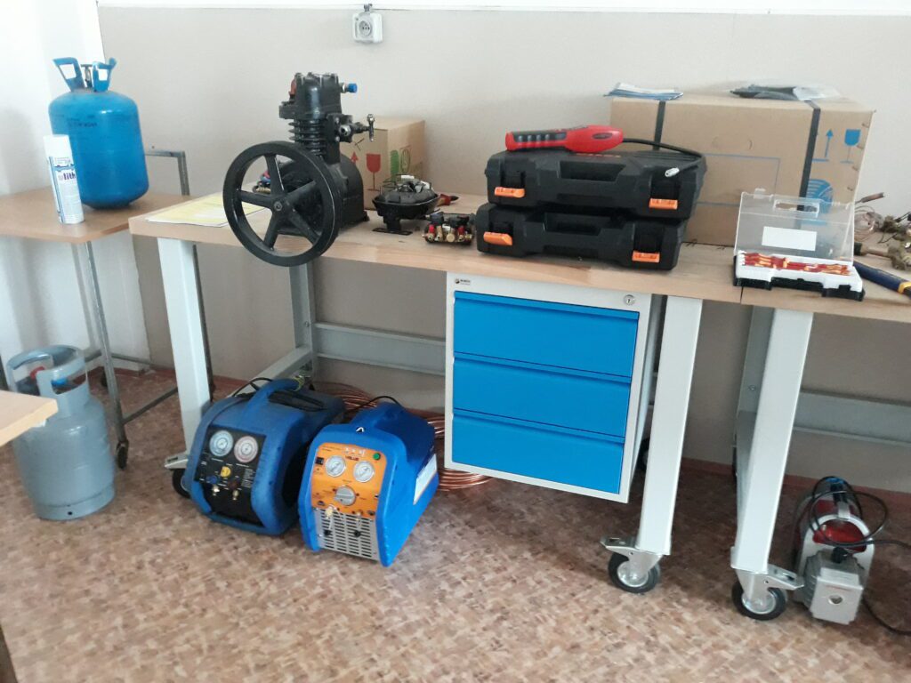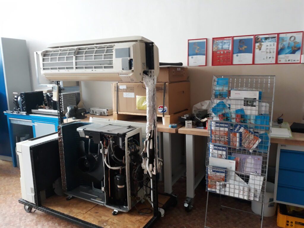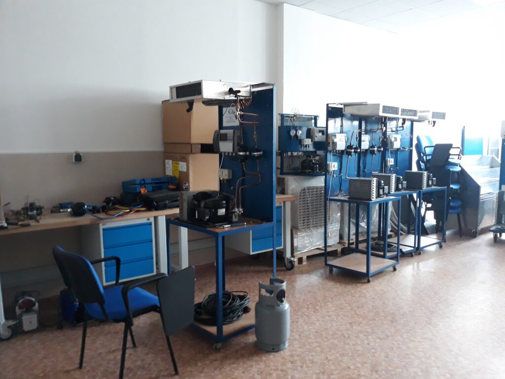 Samotný výukový proces vrcholí cvičnými pracemi na chladící technice, popř. klimatizacích. Využívají se modely (chladící vitríny) i reálné výrobky (klimatizace). Studenti mj. provádějí pracovní úkony spojené s montáží komponentů, zajištěním těsnosti, které jsou nezbytné z hlediska legislativy na ochranu atmosféry (např. zkouška přetlakem, podtlakem apod.).
